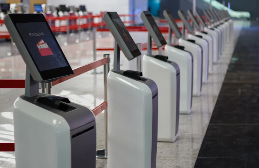 ธุรกิจเกี่ยวกับสายการบิน ส่วนใหญ่จะนำตู้คีออสมาใช้งานเพื่อให้บริการเช็กอินตั๋วเครื่องบินแบบอัตโนมัติ ช่วยอำนวยความสะดวกแก่ผู้ใช้บริการ และช่วยลดภาระพนักงานต้อนรับประจำสายการบิน