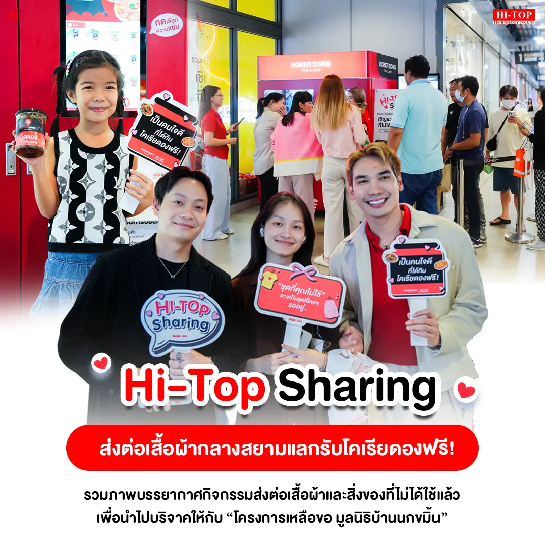 เมื่อวันที่ 16 พฤษภาคม 2568 บริษัท Hi-Top Technology ร่วมกับ โคเรียดอง (Koreadong Thailand) จัดกิจกรรม Hi-Top Sharing ณ สาขา สยามสแควร์ วัน โดยเปิดพื้นที่ให้ทุกคนได้นำเสื้อผ้ามาบริจาค แลกรับโคเรียดอง