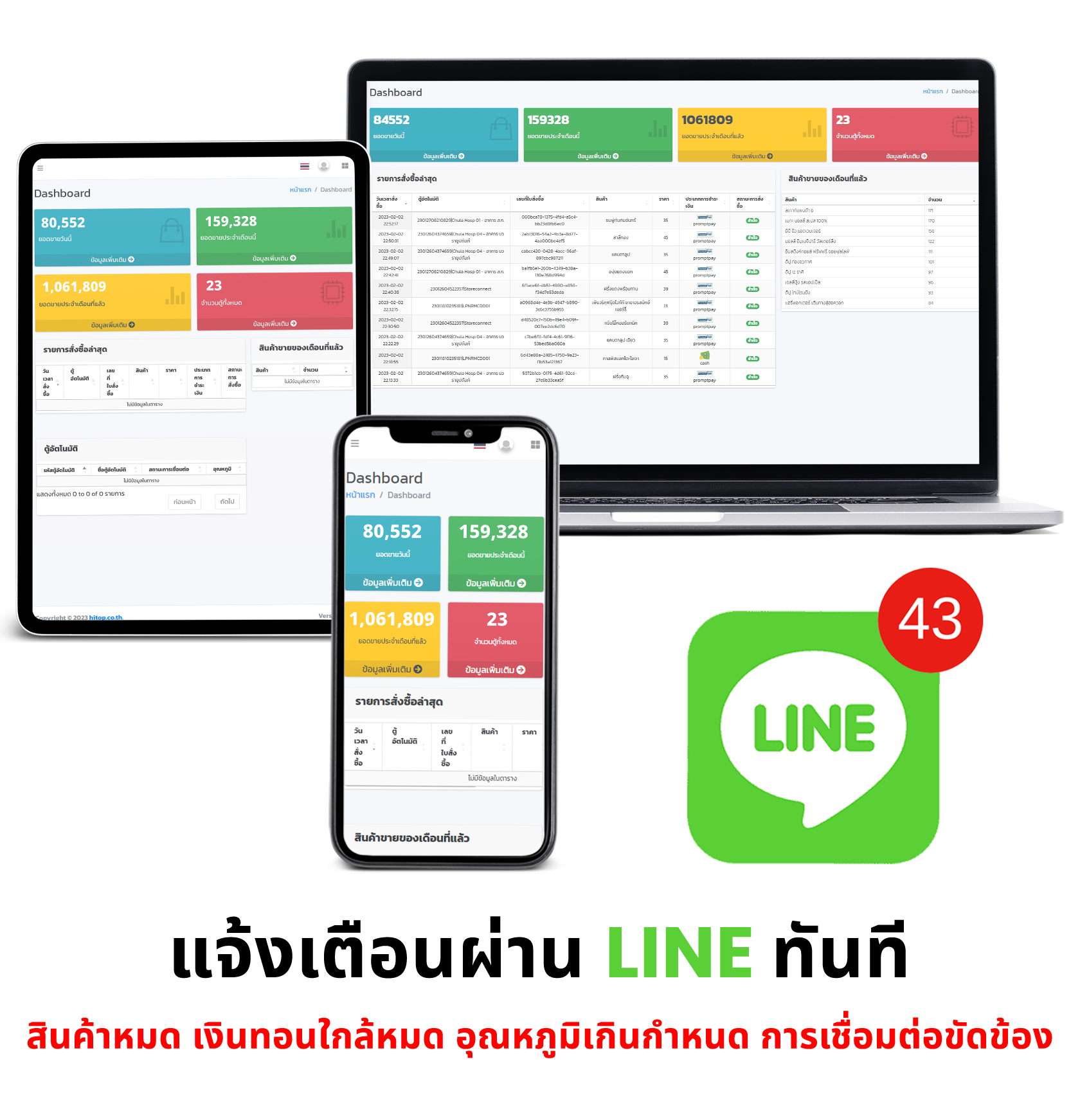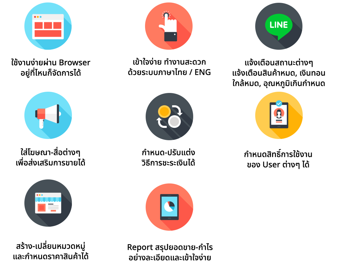 Software ระบบจัดการขาย เป็นระบบออนไลน์เชื่อมต่อผ่าน Server โดยสามารถจัดการตู้ Vending Machine ทั้งหมดทุกตู้ที่ลูกค้าเป็นเจ้าของ ได้อย่างสะดวก ทุกที่ ทุกเวลา ตลอด 24 ช.ม.