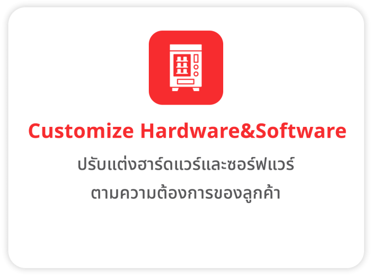 ด้วยโซลูชั่นการในการผลิตตู้ Vending Machine แบบครบวงจร ตั้งแต่เริ่มออกแบบ ผลิต ขนส่ง ติดตั้ง ไปจนถึงการรับประกันและบริการหลังการขาย ซึ่งรวมไปถึงการเสริมและตกแต่งตู้ ไม่ว่าจะเป็นเรื่องสติกเกอร์สำหรับแต่งตู้ ไปจนถึงซอฟต์แวร์การทำงานเพื่อให้ตอบโจทย์ธุรกิจของคุณได้อย่างดีที่สุด